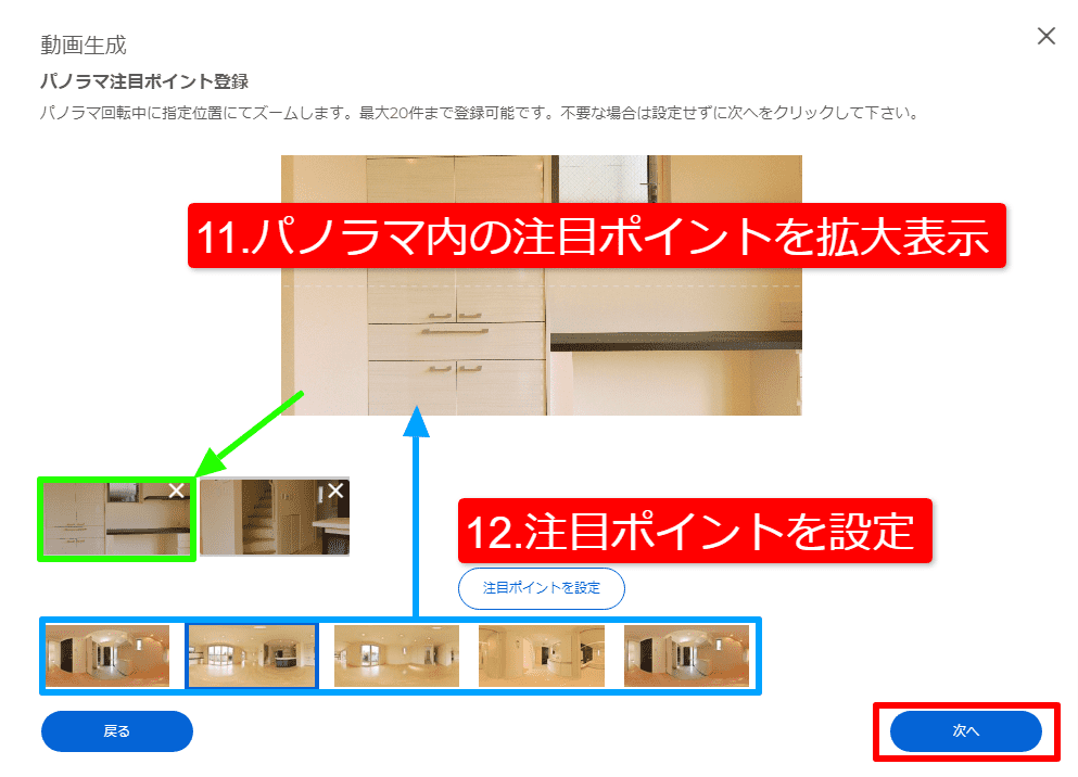 11.各パノラマのプレビュー画面を回転させ注目ポイントを拡大表示