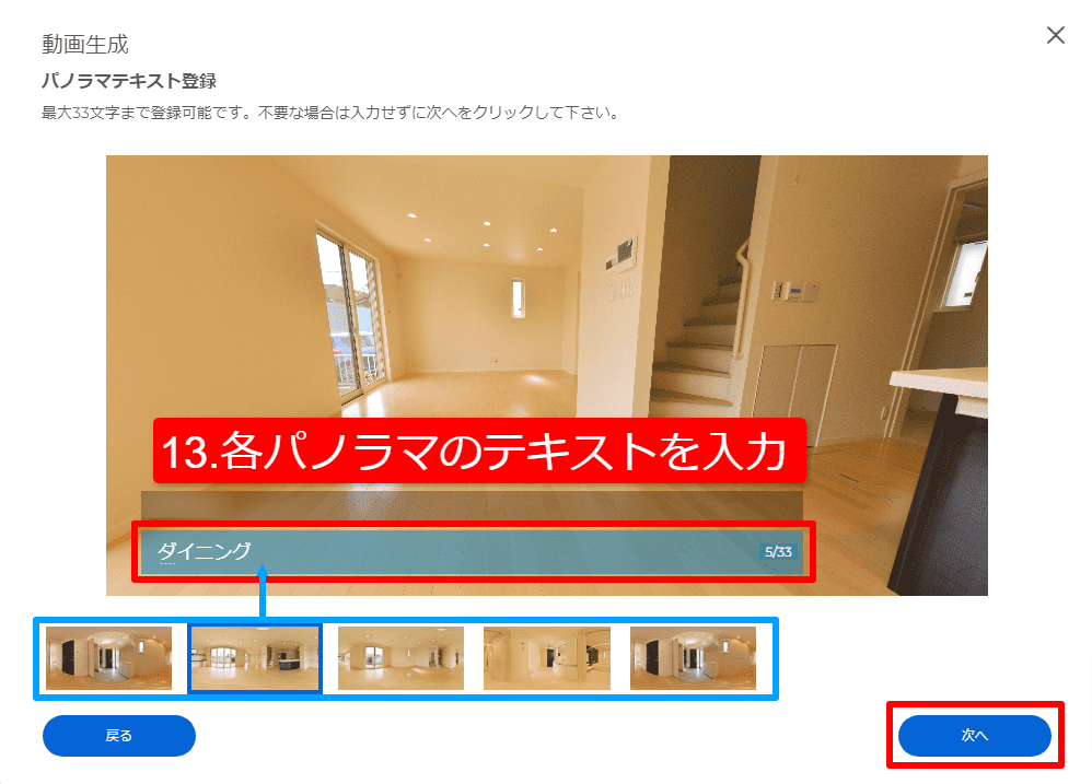 13.各パノラマの紹介テキストを入力(33文字まで)