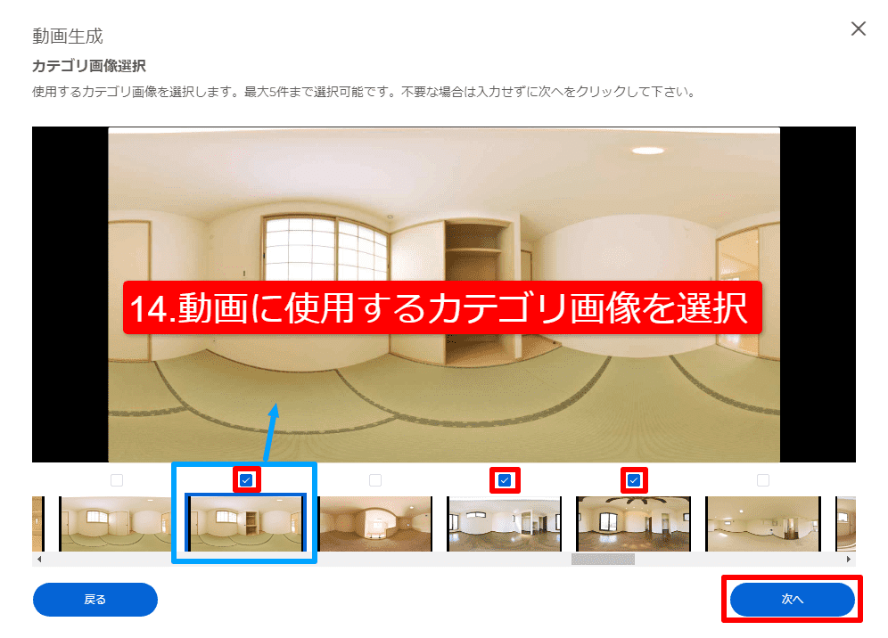 14.登録されたカテゴリ画像から、動画に使用する画像を選択