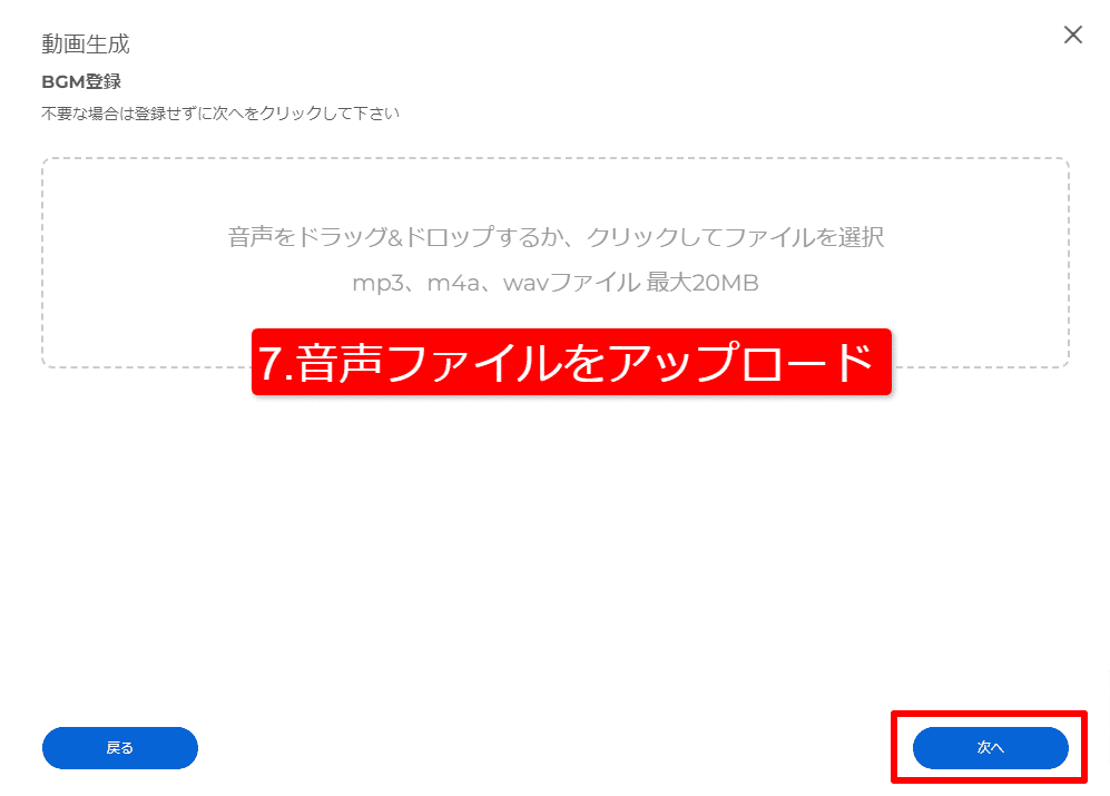 7.音声ファイルをアップロード(動画再生中の音楽やナレーション)