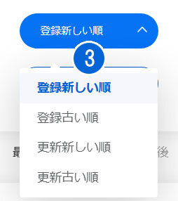 ③ 並び順:登録の新・旧、更新の新・旧から並び順を変更できます。