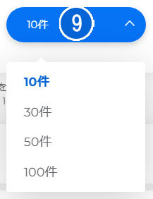 ⑨ 表示件数:一画面に表示する件数の選択ができます。